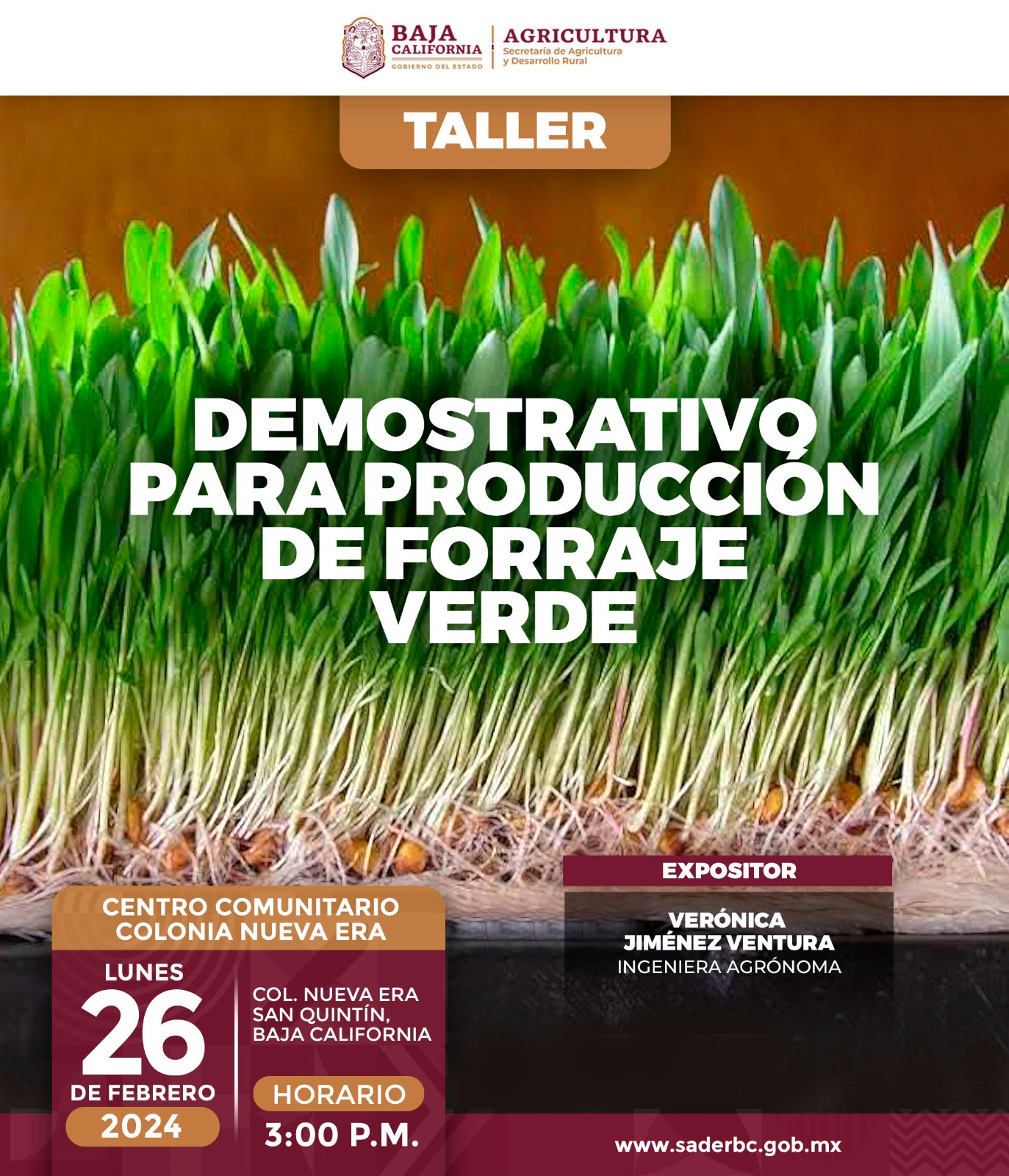 SAN QUINTÍN BC, 23 de febrero de 2024.- Con la finalidad de brindar alternativas de alimento para aves de postura, la Secretaría de Agricultura y Desarrollo Rural (SADERBC), invita al taller demostrativo para producción de forraje verde en el valle de San Quintín.