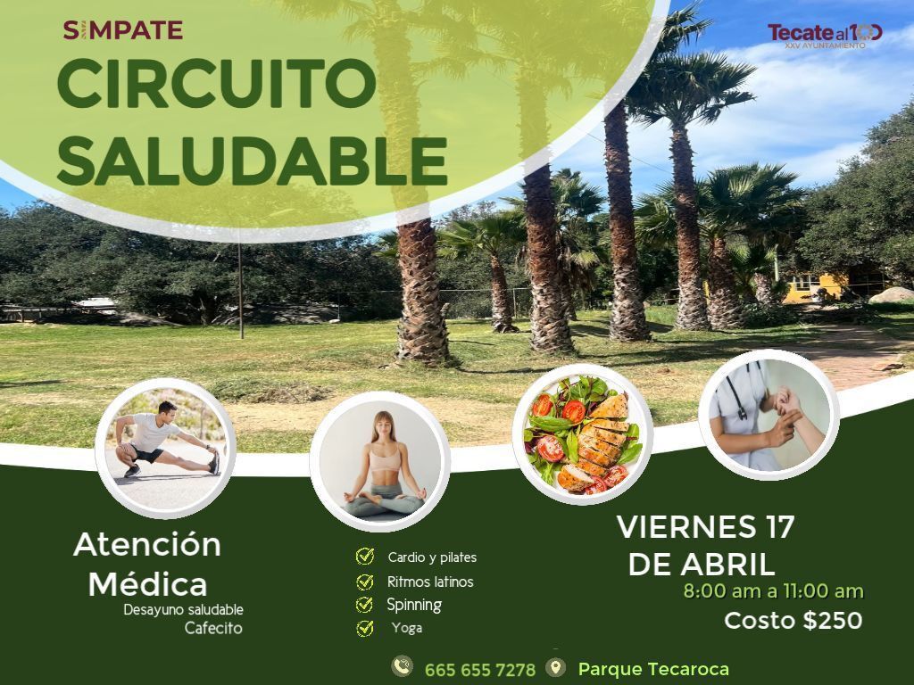 TECATE BC, 10 de abril de 2026.– Con el objetivo de fomentar estilos de vida saludables y promover el bienestar integral de las familias tecatenses, el Sistema Municipal de Parques Temáticos (SIMPATE) invita a la ciudadanía a participar en el “Circuito Saludable”, una jornada especial que se llevará a cabo en el Parque Tecaroca.