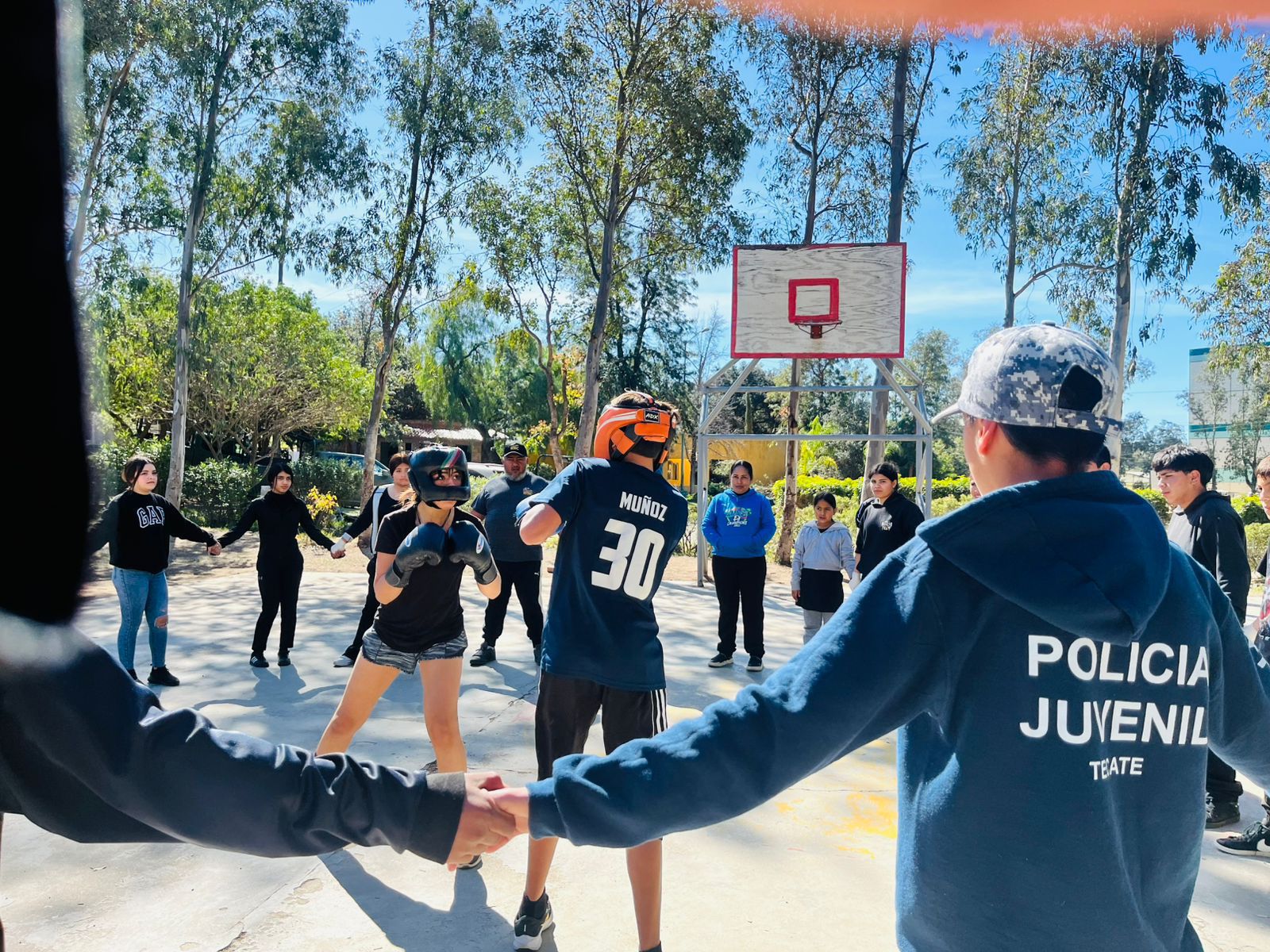 De manera paralela, en el Parque Tecaroca se desarrollaron las actividades sabatinas del programa Policía Juvenil, donde las y los participantes realizaron acondicionamiento físico, orden cerrado, pista del cadete, práctica del lema institucional y clases de box impartidas por entrenador del gimnasio “Vida Nueva”. Estas dinámicas fortalecen valores como la disciplina, el respeto, la responsabilidad, el compromiso y la empatía.
