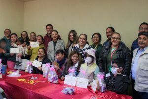 Cota Muñoz y Herrera Soto entregaron reconocimientos a las participantes de los tres talleres impartidos por personal especializado y compartieron un momento de convivencia con ellas, en el cual el alcalde refrendó el compromiso del XXV Ayuntamiento de Tecate de atender a las personas que más necesitan.