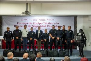 TECATE BC,, 25 de febrero de 2026.– La Policía Municipal de Tecate recibió equipo táctico por parte del Gobierno del Estado, como parte de las acciones coordinadas para el fortalecimiento de la seguridad; así como el brindar mayores condiciones de protección a quienes diariamente resguardan la tranquilidad de las familias tecatenses.