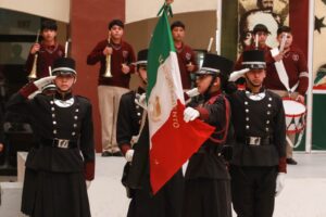 Reiteró que no debemos olvidar que México es un país honorable, autónomo y amistoso, y la historia de la bandera nos recuerda que siempre debemos ser ciudadanos ejemplares y honrarla. Puntualizó que el civismo en las juventudes es fundamental para seguir construyendo un México justo con bienestar.