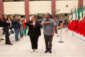 PLAYAS DE ROSARITO BC, 20 de febrero de 2025.- La Presidenta Municipal, Rocio Adame Muñoz, encabezó el evento cívico de Exhibición de Banderas de México, homenaje a nuestro Lábaro Patrio y a los símbolos que nos dan identidad como nación.