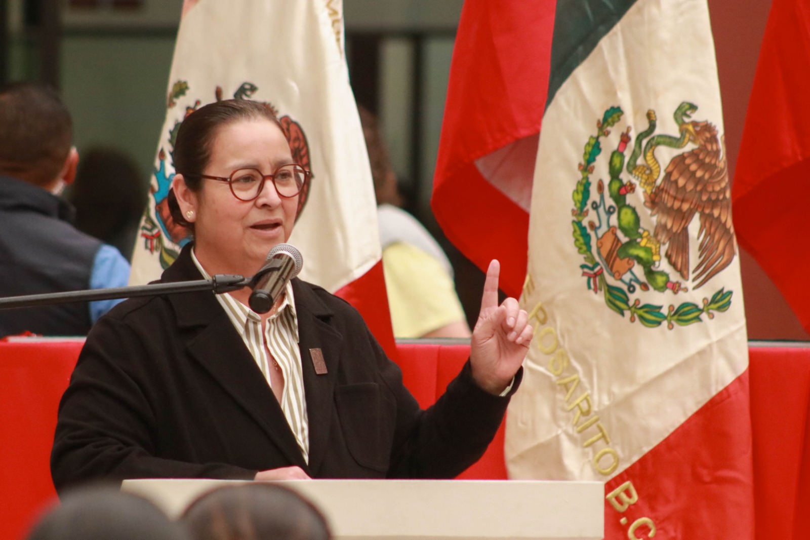 **La presidenta municipal de Rosarito, Rocio Adame Muñoz encabezó el acto cívico