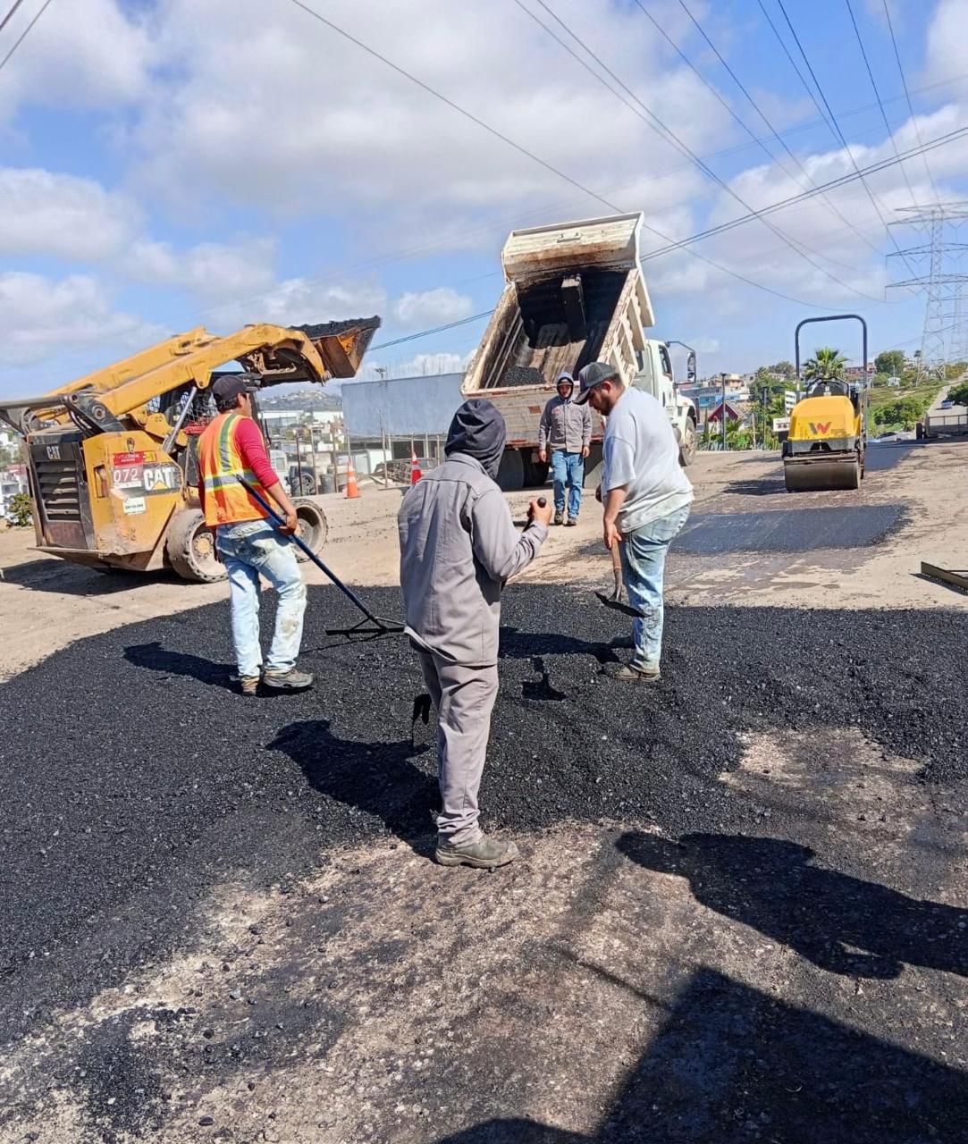 Cuadrillas operativas realizaron bacheo con asfalto frío sobre el bulevar Benito Juárez y en la colonia Lucio Blanco, calle Alta Tensión, utilizando 12 costales de 25 kg para mejorar la circulación y prevenir riesgos.
