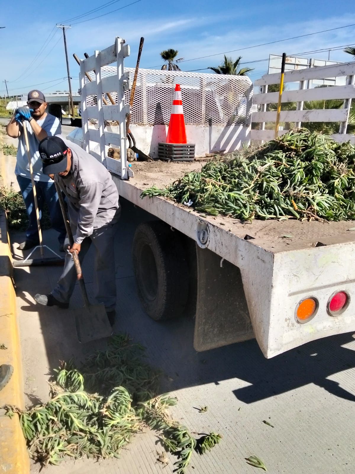 Se realizaron labores de deshierbe y barrido en el camellón central del bulevar Popotla, a la altura de “La Paloma”, en el tramo de sur a norte.