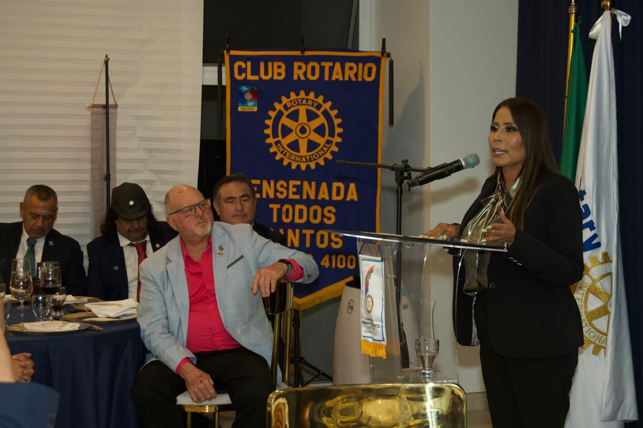ENSENADA BC, 12 de julio de 2025.- Al participar en el cambio de mesa directiva del Club Rotary Ensenada Todos Santos, Distrito 4100, la alcaldesa Claudia Agatón Muñiz reconoció el trabajo que hace esta asociación por apoyar a los demás.