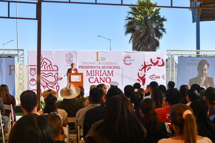 SAN QUINTÍN BC, 15 de octubre de 2025.- La presidenta municipal de San Quintín, Miriam Cano Núñez, informó que el ayuntamiento concluye su primer año de gobierno con avances en reglamentación, planeación, infraestructura, energía y digitalización, consolidando los cimientos administrativos del municipio más extenso del país.