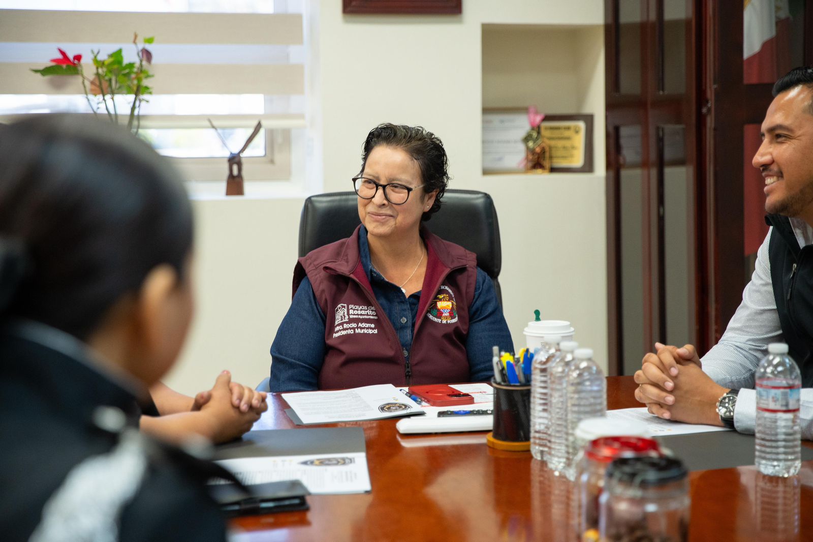 **La alcaldesa de Playas de Rosarito, Rocio Adame se reúne con delegado de Primo Tapia, y con integrantes de la escolta delegacional