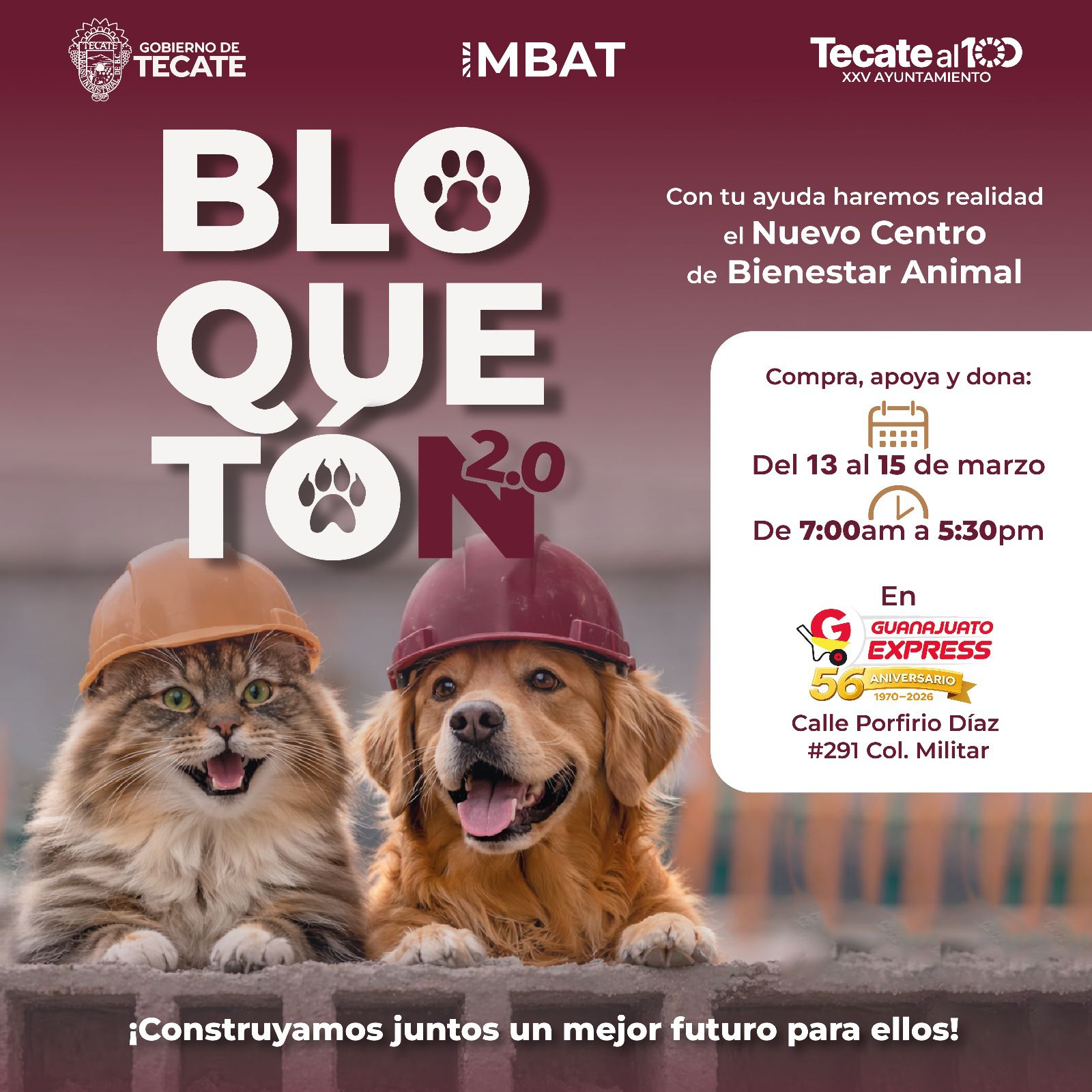 TECATE BC, 04 de marzo de 2026.- El  Instituto Municipal de Bienestar Animal de Tecate (IMBAT), invita a toda la comunidad a sumarse con entusiasmo y corazón solidario al BLOQUETÓN 2.0, una iniciativa que busca reunir materiales para hacer realidad el tan anhelado Centro de Bienestar Animal de Tecate.
