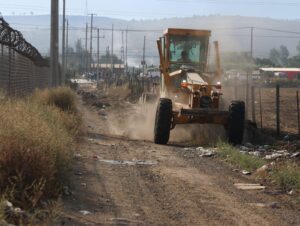 La jornada de este jueves inició en La Presa Este, donde se realizaron trabajos de motoconformado en 900 metros lineales y reparación de luminarias en la entrada del fraccionamiento Las Alondras, garantizando un acceso más digno y seguro para las familias.