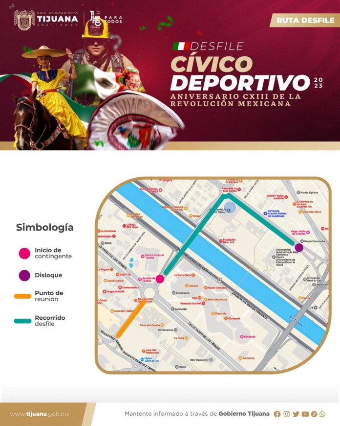 TIJUANA BC, 14 de noviembre de 2023.- El XXIV Ayuntamiento de Tijuana, prepara el tradicional desfile cívico deportivo para conmemorar el CXIII Aniversario de la Revolución Mexicana, el próximo lunes 20 de noviembre, a partir de las 09:00 horas.