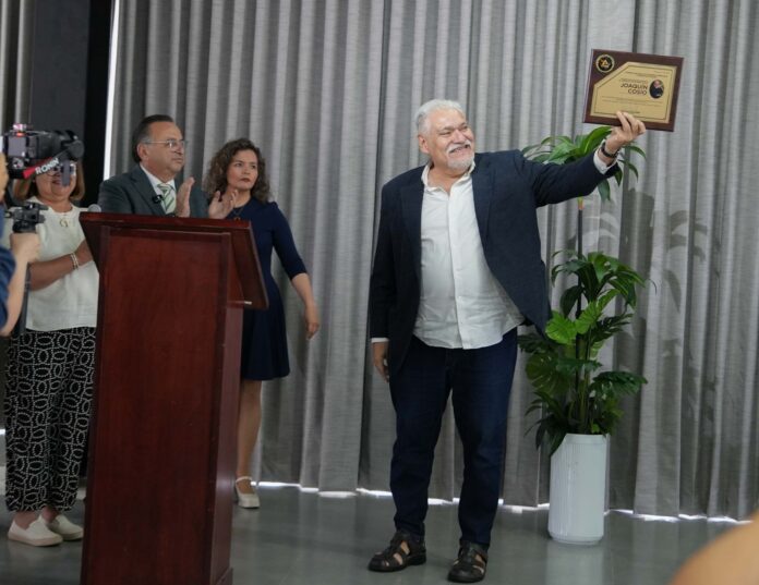 “Decir Joaquín Cosío es evocar una voz que nos ha acompañado en múltiples pantallas, pero también en lo más íntimo de nuestra memoria colectiva. Desde sus icónicos papeles, hasta su profunda versatilidad en el teatro, la poesía y el cine internacional”, subrayó el líder empresarial.
