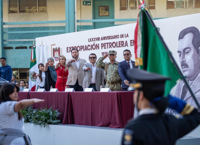 TIJUANA BC, 18 de marzo de 2026.- El presidente municipal de Tijuana, Ismael Burgueño Ruiz, encabezó la ceremonia conmemorativa por el 88 Aniversario de la Expropiación Petrolera, decretada por el presidente Lázaro Cárdenas del Río, en 1938; un hecho de relevancia para las y los mexicanos, que sentó las bases de la independencia energética.