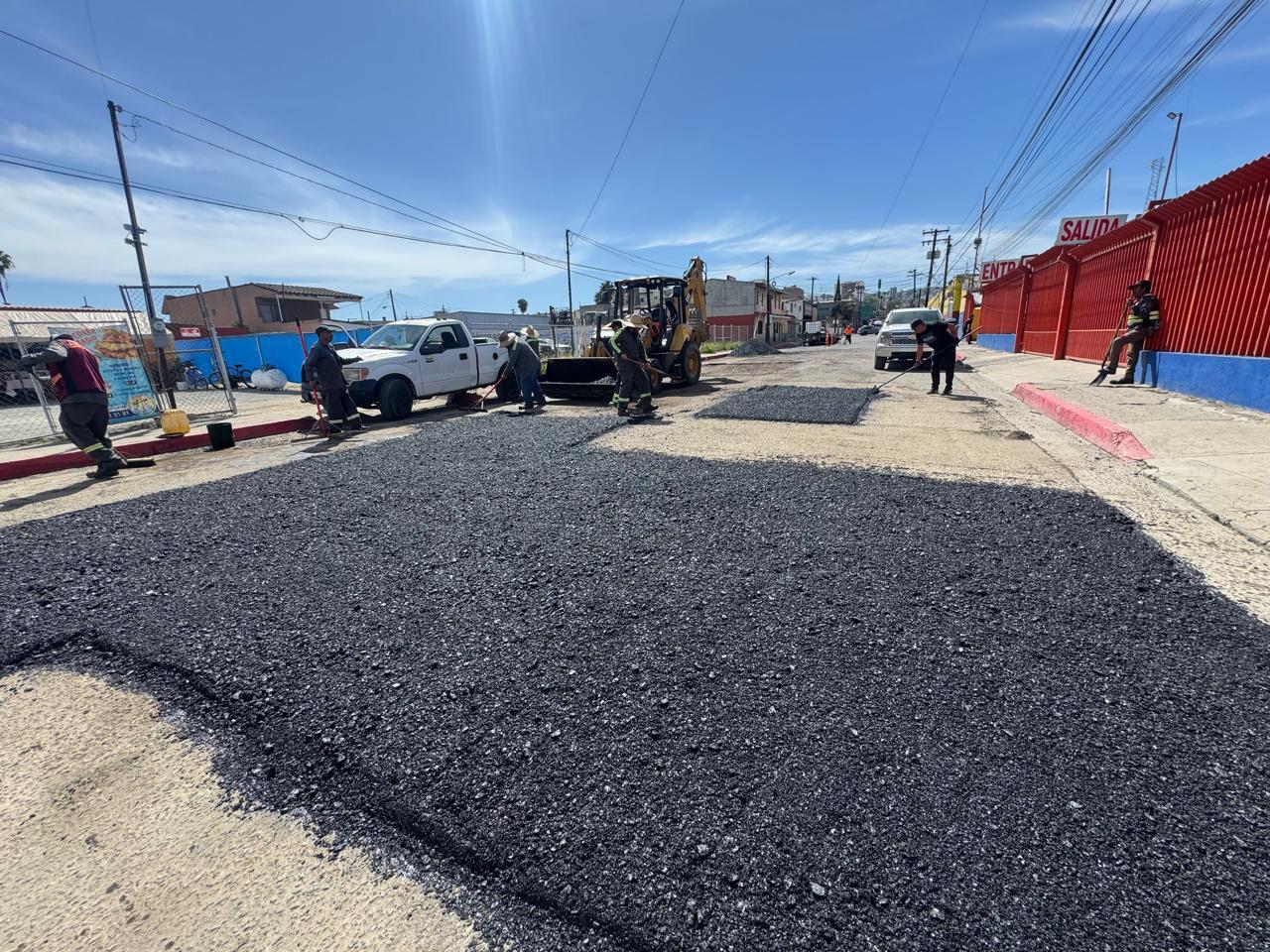 TIJUANA BC, 09 de marzo de 2026. La Secretaría de Desarrollo Territorial y Urbano (SDTU) de Tijuana, lleva a cabo trabajos de bacheo con mezcla asfáltica en caliente en distintas delegaciones de la ciudad, acciones que conllevan a mejorar las condiciones de la infraestructura vial, impactando positivamente a más de 27 mil personas.