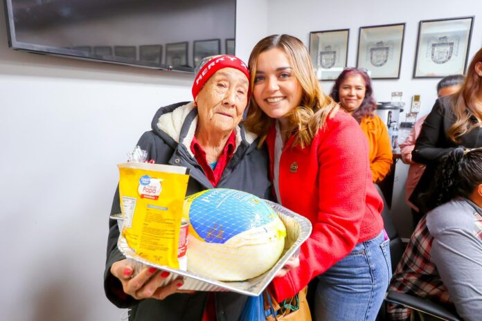 Como parte de este programa decembrino, este viernes 13 de diciembre la regidora Michel García hizo entrega de cincuenta cenas navideñas a familias de todas las colonias de la ciudad, con la intención de brindar un respiro a su economía en esta temporada de fiestas.