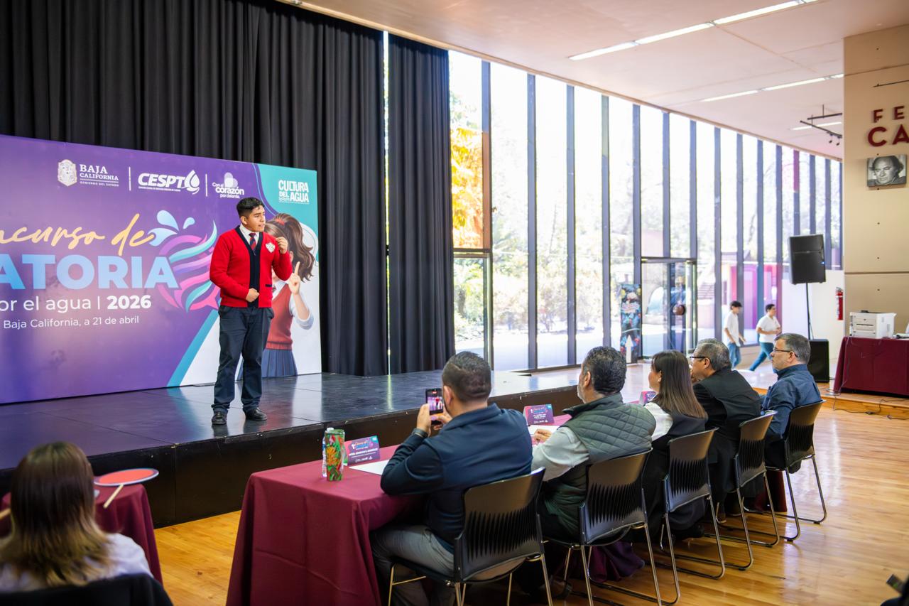 TIJUANA BC, 22 de abril de 2026.-Estudiantes de nivel secundaria alzaron la voz sobre el cuidado del agua durante el Primer Concurso de Oratoria “Voces por el Agua 2026”, organizado por la Comisión Estatal de Servicios Públicos de Tijuana (CESPT), en coordinación con la Secretaría de Educación del Estado.