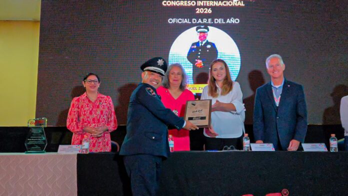 En esta actividad, destaca la participación del oficial Manuel Zapata Torres, instructor del programa D.A.R.E. en Tijuana desde el año 2022, quien fue reconocido como Oficial D.A.R.E. 2026 tras resultar ganador en una convocatoria nacional en la que cada municipio postula a un representante.