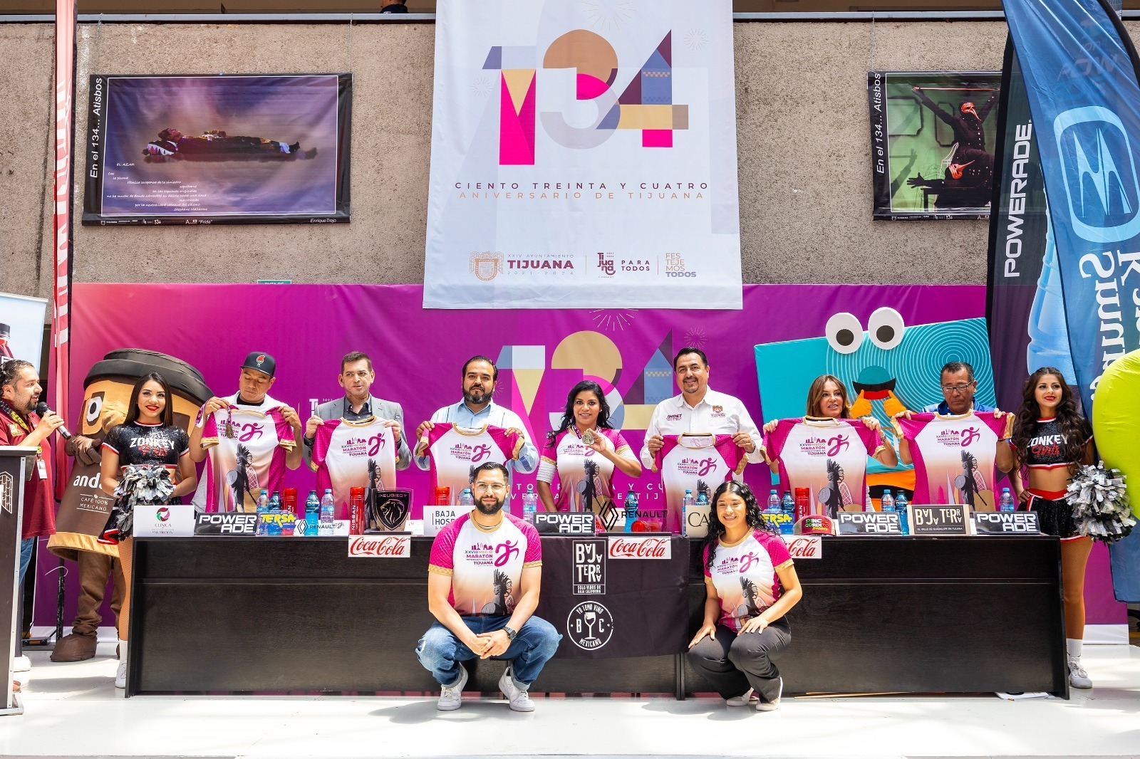 TIJUANA BC, 13 de julio de 2023.- A 10 días de que sea celebrada la edición 28 del Medio Maratón Internacional de Tijuana, el Instituto Municipal del Deporte (IMDET) dio a conocer este jueves la medalla y playera conmemorativa del evento pedestre, presentación que estuvo encabezada por la alcaldesa Montserrat Caballero Ramírez.