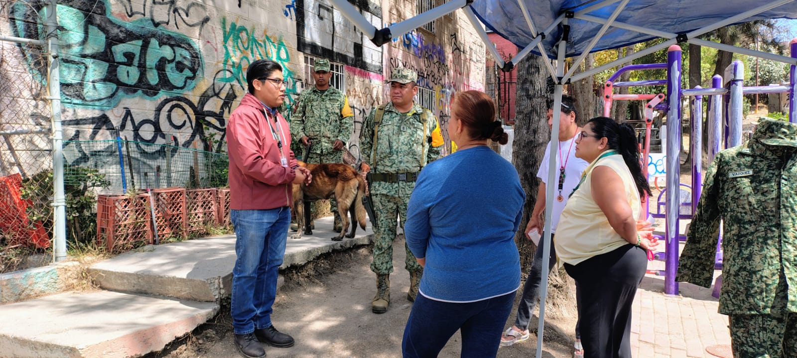 **Ejército Mexicano, atiende las necesidades de la comunidad en el Parque San Antonio, con la finalidad de reforzar la seguridad y prevención en las familias.