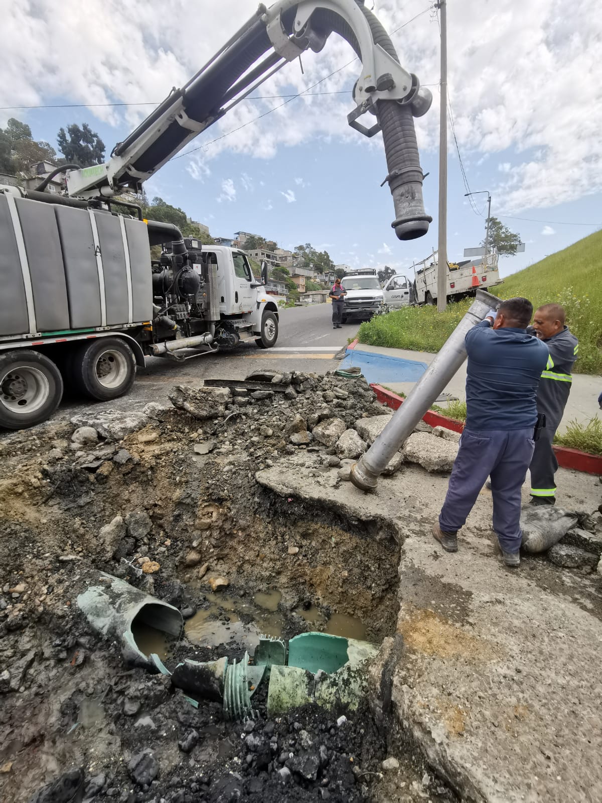 Mencionó que, este martes se llevó a cabo una intervención en el subcolector Palmeras de 15 pulgadas, el cual sufrió un colapso a causa de una avería que derivó en un derrame de aguas residuales, por ello se contempla la reposición de cuatro metros de tubería de policloruro de vinilo (PVC) de 15 pulgadas de diámetro, así como la rehabilitación de un pozo de visita que también resultó dañado. Esta obra busca evitar futuros derrames y se prevé que concluya antes de finalizar la semana.