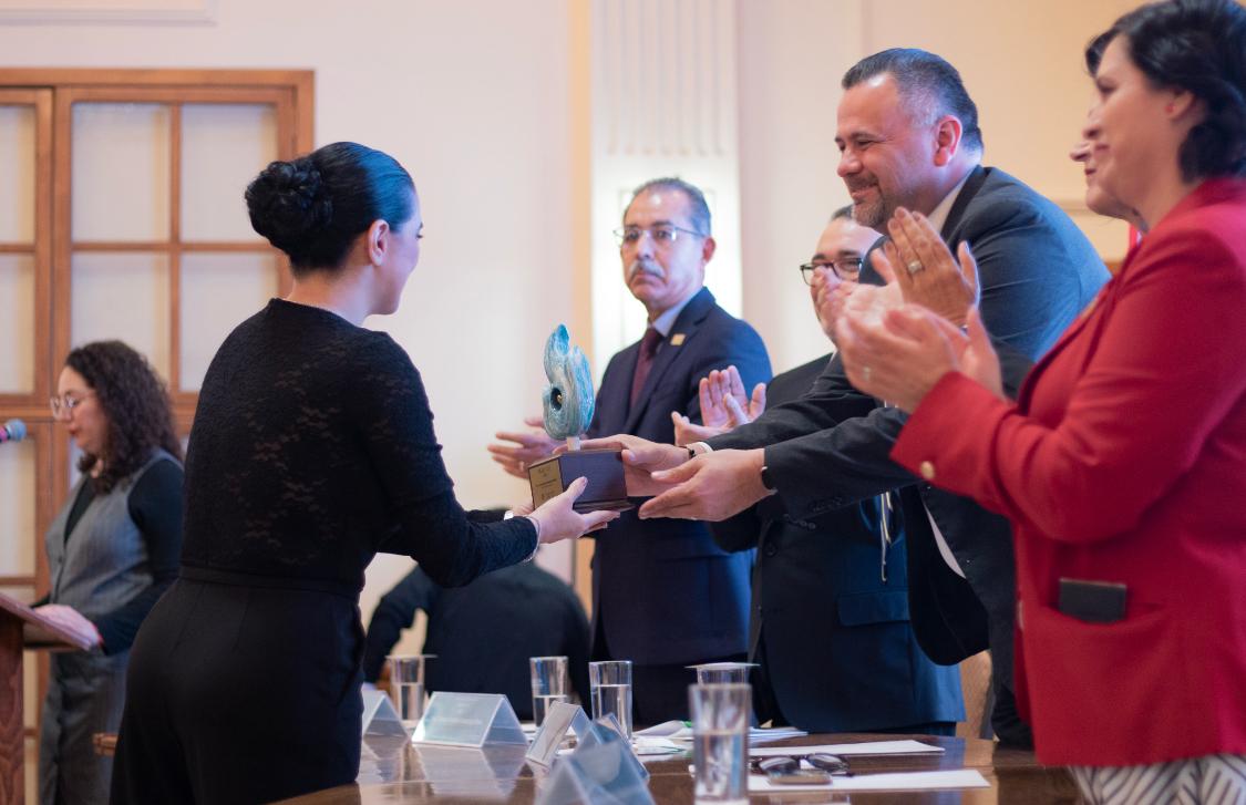 Al recibir el galardón, la Dra. Liza María Pompa González recordó que “desde mi formación en la UABC, he llevado conmigo valores esenciales que han sido la base de mi desarrollo profesional y personal. La responsabilidad, la perseverancia y la honestidad han guiado mi trabajo y mis decisiones a lo largo de mi trayectoria”.