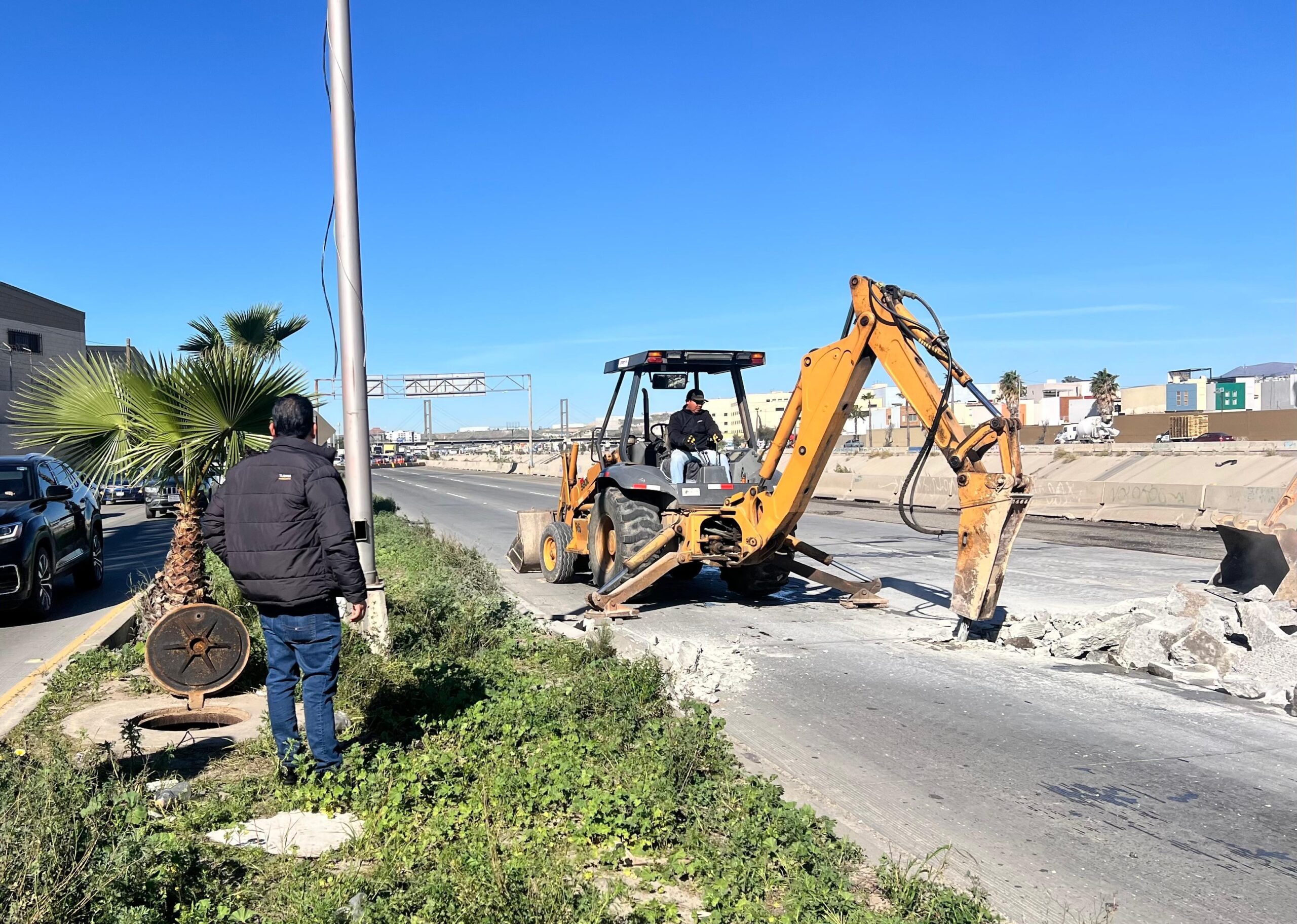 TIJUANA BC, 16 de enero de 2026.- Con motivo de las obras de reparación del socavón que se realizan en la Vía Rápida Poniente, a la altura del Centro Industrial Los Pinos, la Secretaría de Movilidad Urbana Sustentable, Inspección y Seguridad Vial (SEMOVIS), hace un llamado a la ciudadanía para tomar precauciones y utilizar rutas alternas que permitan mantener un mejor flujo vehicular en la zona.