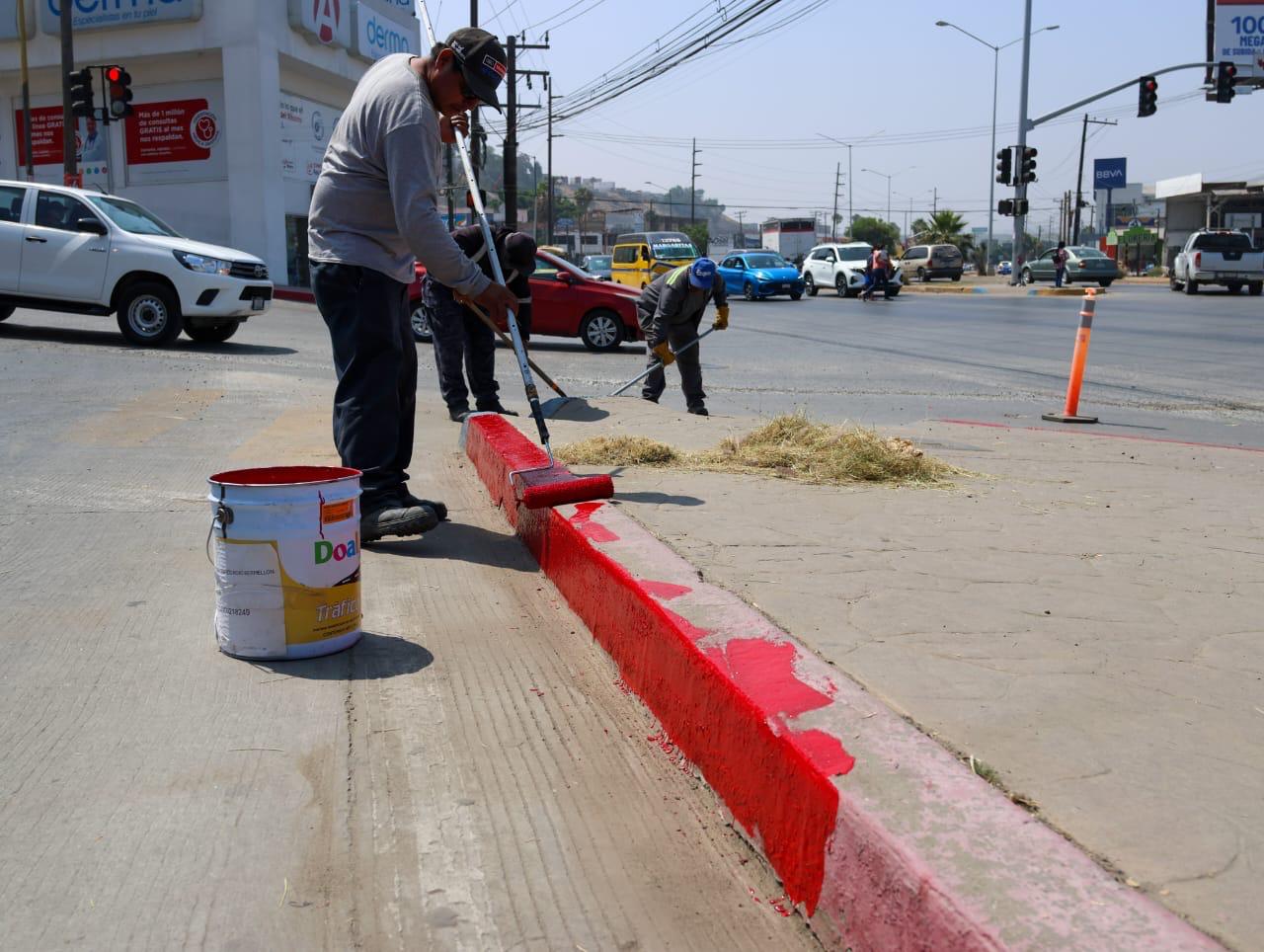 Durante los trayectos de este viernes, las cuadrillas de trabajo se trasladaron a la calle San José de Cabo en el Guaycura, con labores de limpieza y poda en 115 metros lineales de camellón, con el objetivo de facilitar el tránsito peatonal y el embellecimiento de la zona.