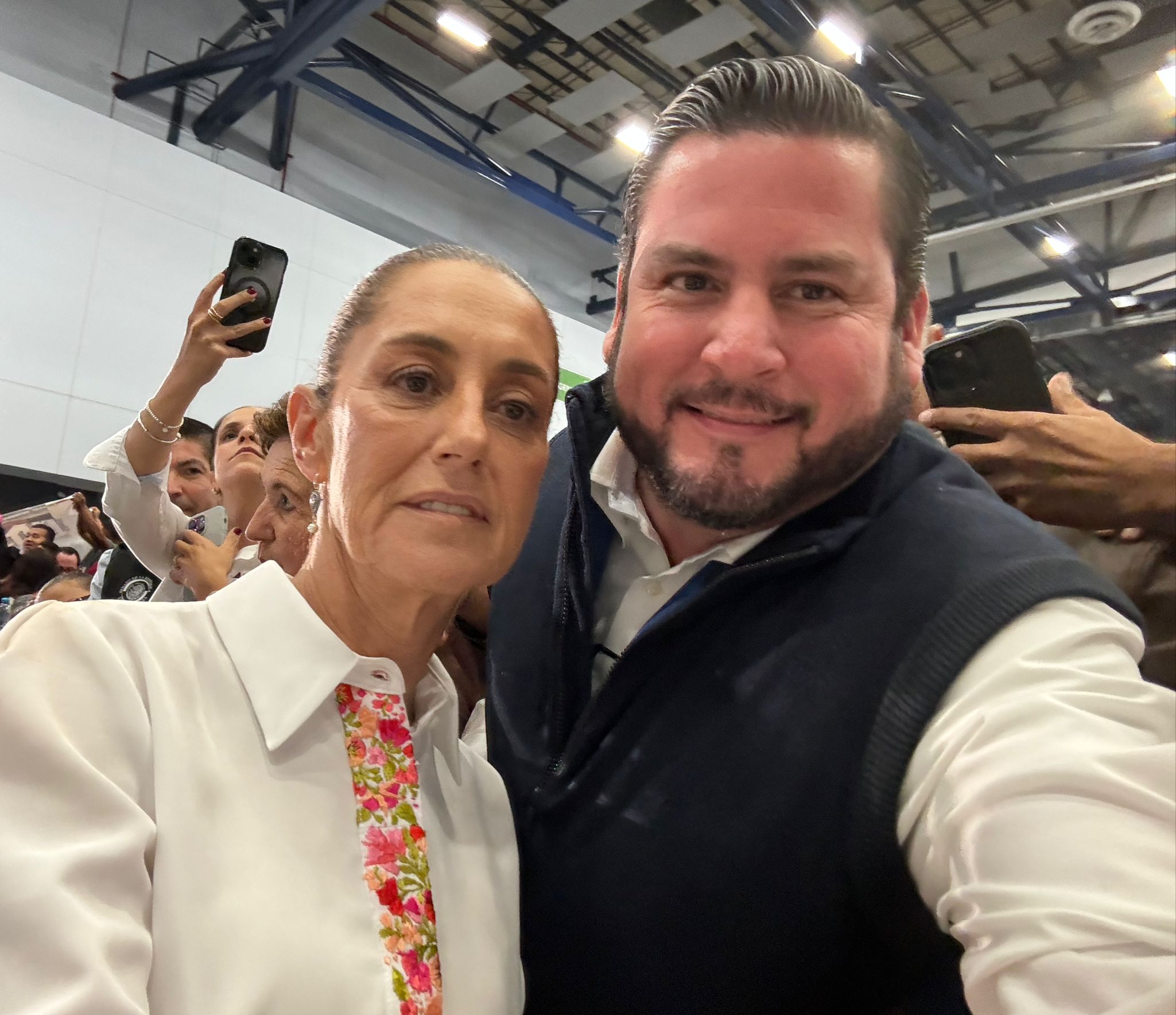 «Agradecemos todo lo que nos trajeron a Baja California, específicamente en Tijuana, el Hospital General, la Universidad en la Zona Este, entre otros proyectos, nuestra Presidenta cumple porque cumple y hoy lo podemos constatar», subrayó Burgueño Ruiz.