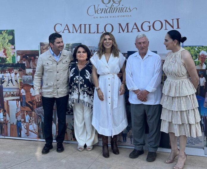 ENSENADA BC, 12 de agosto de 2025.- En el marco de las tradicionales fiestas de la vendimia, el pasado 8 de agosto se llevó a cabo un emotivo homenaje al enólogo italo-mexicano Camillo Magoni, por sus seis décadas de contribución a la vitivinicultura de Baja California, durante el evento “60 Vendimias en Baja California”, celebrado en el Valle de Guadalupe.