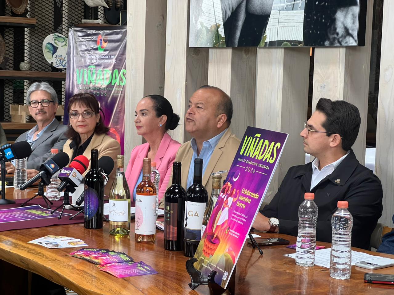 Durante la conferencia de presentación se contó con la presencia de autoridades como Janise Izabal Bitterlin, delegada de SECTURE en Valle de Guadalupe; Yolanda Navarro, delegada de SECTURE en Ensenada; Marco Carrillo, Presidente de Proturismo Ensenada; y Luis Novelo, Presidente de CANIRAC Ensenada, así como de los representantes de casas vinícolas que serán sede de los eventos de “Viñadas 2026”, quienes forman parte de este esfuerzo de promoción del destino.