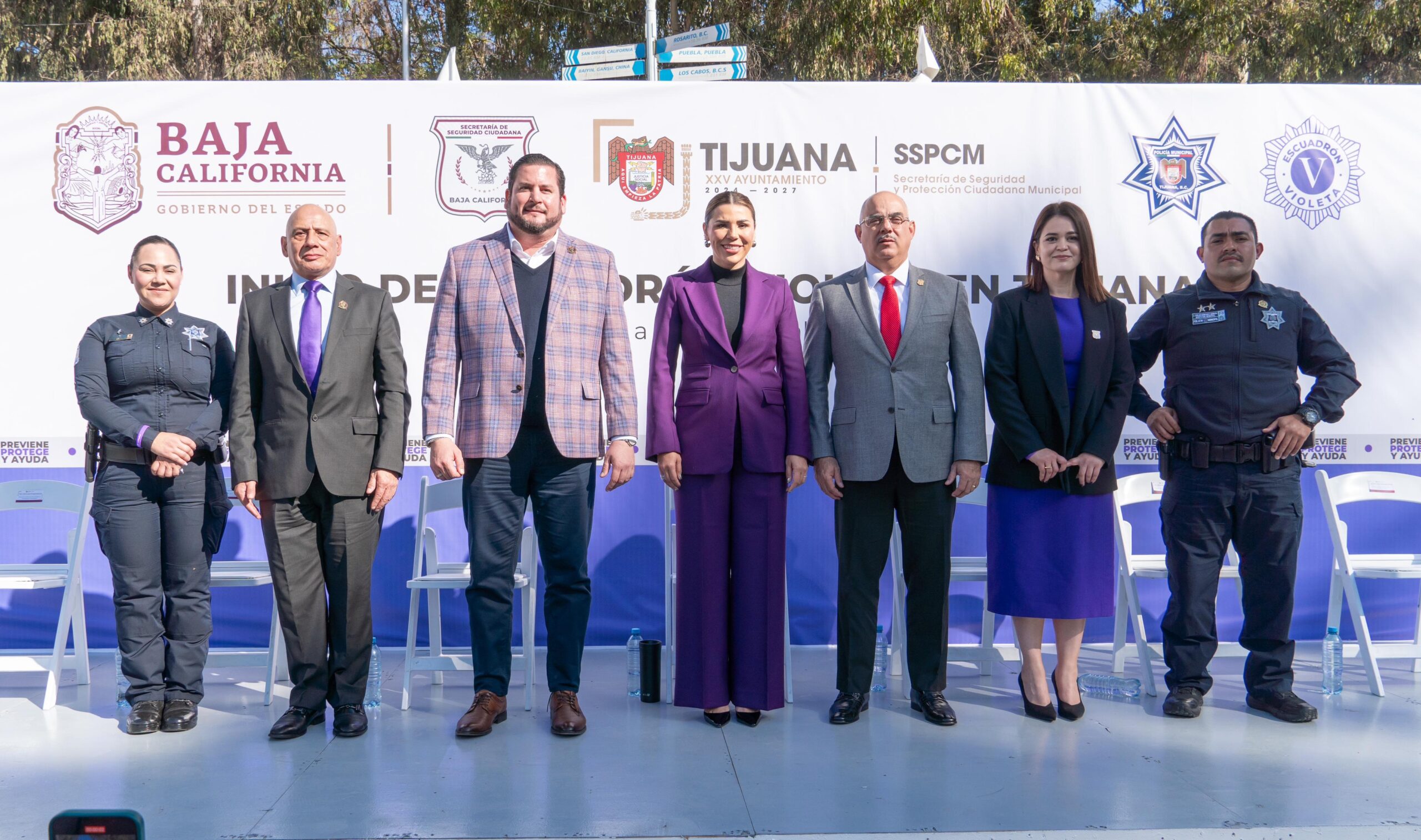 Se contó con la presencia del General Leopoldo Tizoc Aguilar Durán, Secretario de Seguridad y Protección Ciudadana del Gobierno del Estado; Juan Manuel Sánchez Rosales, Secretario de Seguridad y Protección Ciudadana en Tijuana; Silvia Grisel Licon Casanova, Coordinadora del Escuadrón Violeta en Baja California; Juan Carlos Hernández Herrera, Director General de Policía y Tránsito Municipal, así como María Luisa Sánchez Munguía, Directora de Prevención del Delito y Participación Ciudadana.