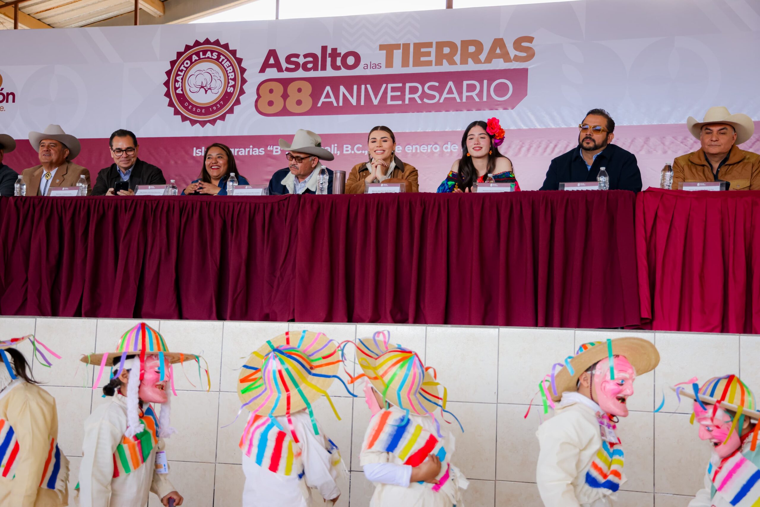 MEXICALI BC, 27 de enero de 2025.- Como reconocimiento al legado de quienes lucharon por justicia social y laboral para las comunidades agrícolas del Valle de Mexicali, la gobernadora Marina del Pilar Avila Olmeda encabezó la conmemoración del 88 Aniversario del histórico Asalto a las Tierras.