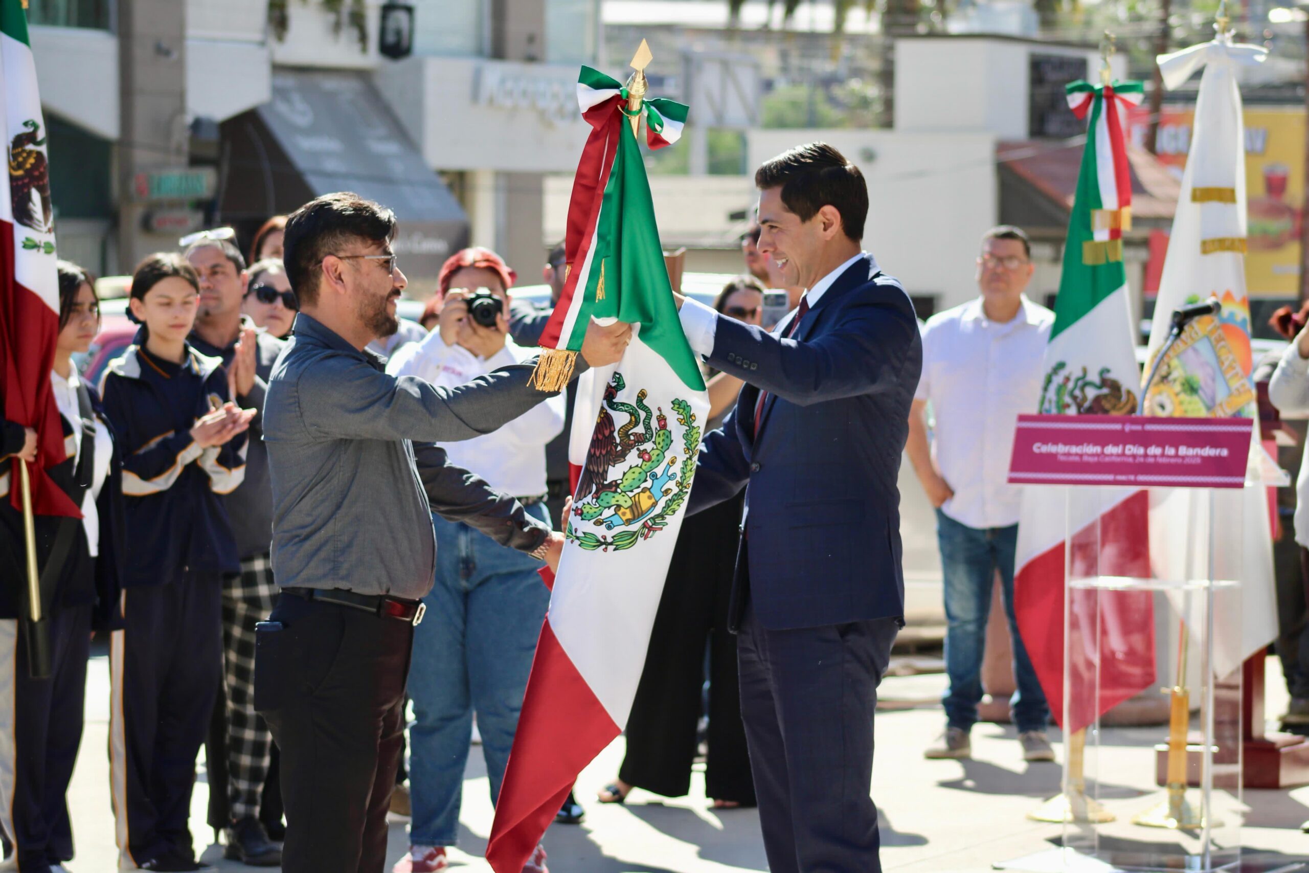 TECATE BC, 24 de febrero de 2025.- En un acto solemne y lleno de patriotismo, el XXV Ayuntamiento de Tecate conmemoró el Día de la Bandera con una ceremonia oficial en la explanada de la Presidencia Municipal, reafirmando el orgullo y respeto por uno de los símbolos más representativos de la identidad nacional.