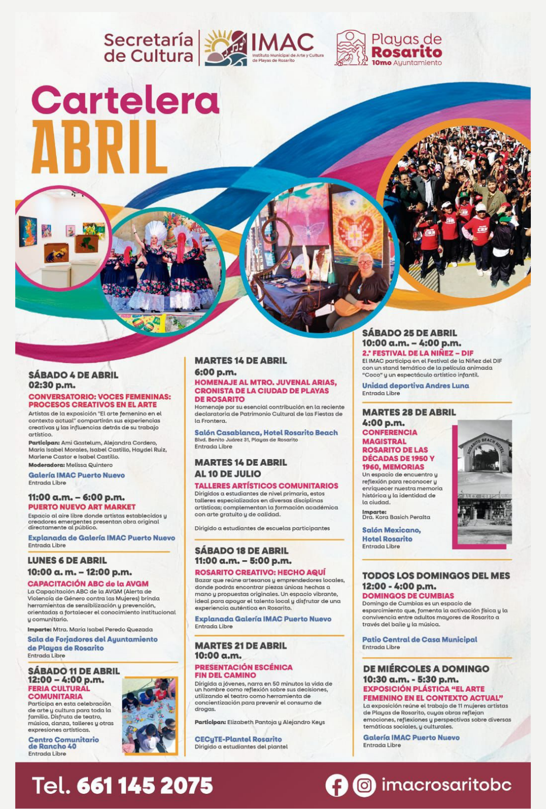 IMPULSA GOBIERNO DE ROSARITO CARTELERA CULTURAL GRATUITA DURANTE EL MES DE ABRIL