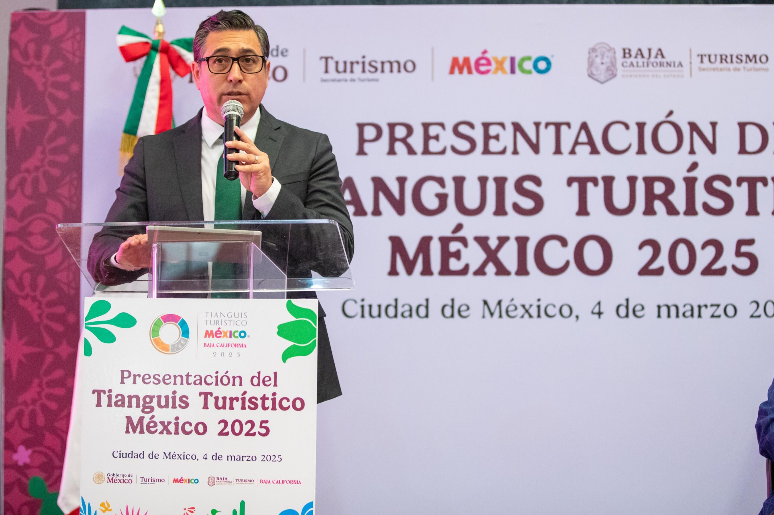 CIUDAD DE MÉXICO BC, 04 de marzo de 2025.- El Secretario de Turismo de Baja California, Miguel Aguíñiga Rodríguez en compañía de la Secretaria de Turismo del Gobierno de México, Josefina Rodríguez Zamora, presentó oficialmente a nivel nacional el Tianguis Turístico 2025, que se llevará a cabo del 28 de abril al 1 de mayo en el Baja California Center, en Playas de Rosarito.