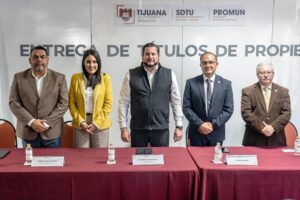El funcionario municipal agregó que con la entrega de estos títulos se da cumplimiento al Plan Municipal de Desarrollo de Tijuana, en el eje 5 Infraestructura y Movilidad para una Tijuana Moderna y a los Objetivos de Desarrollo Sostenible, además se alinea al Programa de Regularización de la Tenencia de la Tierra establecido por la presidenta Claudia Sheinbaum.